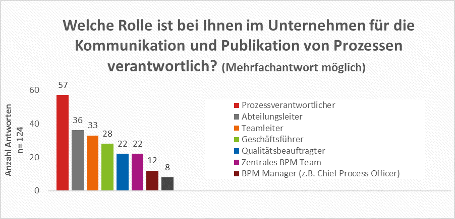 Bei der Frage nach der Verantwortlichkeit, im Hinblick auf die Prozesskommunikation im Unternehmen, sprachen sich knapp die Hälfte der Teilnehmer für den Prozessverantwortlichen aus.