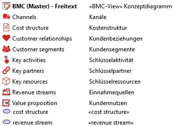 Business Model Canvas: Neue Elemente mit Stereotypbezeichnung