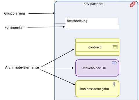 Sie können später die Größe der Kommentarfelder verkleinern und den Inhalt der Beschreibung schrittweise durch ArchiMate®-Elemente ersetzen.
