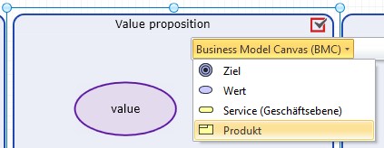 Business Model Canvas: Kontextmenü im BMC-Diagramm